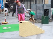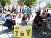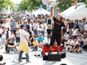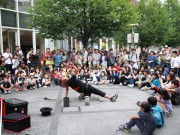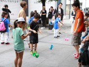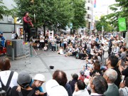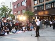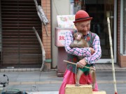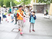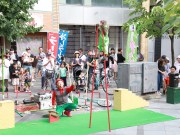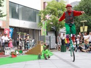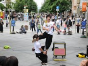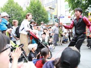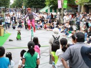 ベビーカーを木陰に寄せて大道芸 (たかはる)