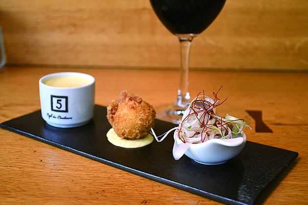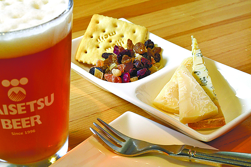 旭川産ブルーチーズと、大雪地ビールを使ったチェダーチーズの盛り合わせ。クラフトビール4種の中から、好きな1杯をセットで楽しめます。