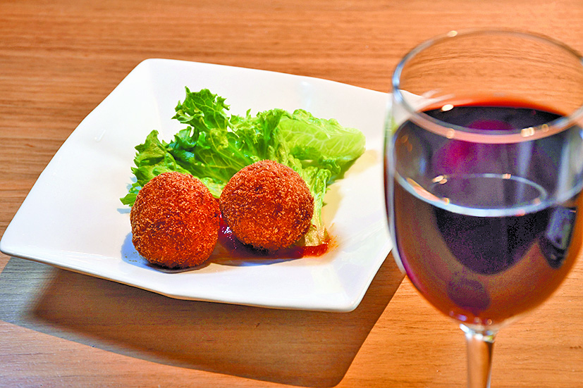 シチリア名物のリゾットで作るコロッケは、絶妙な塩加減と食感がたまりません!寒い日はホットワインで一息ついて。