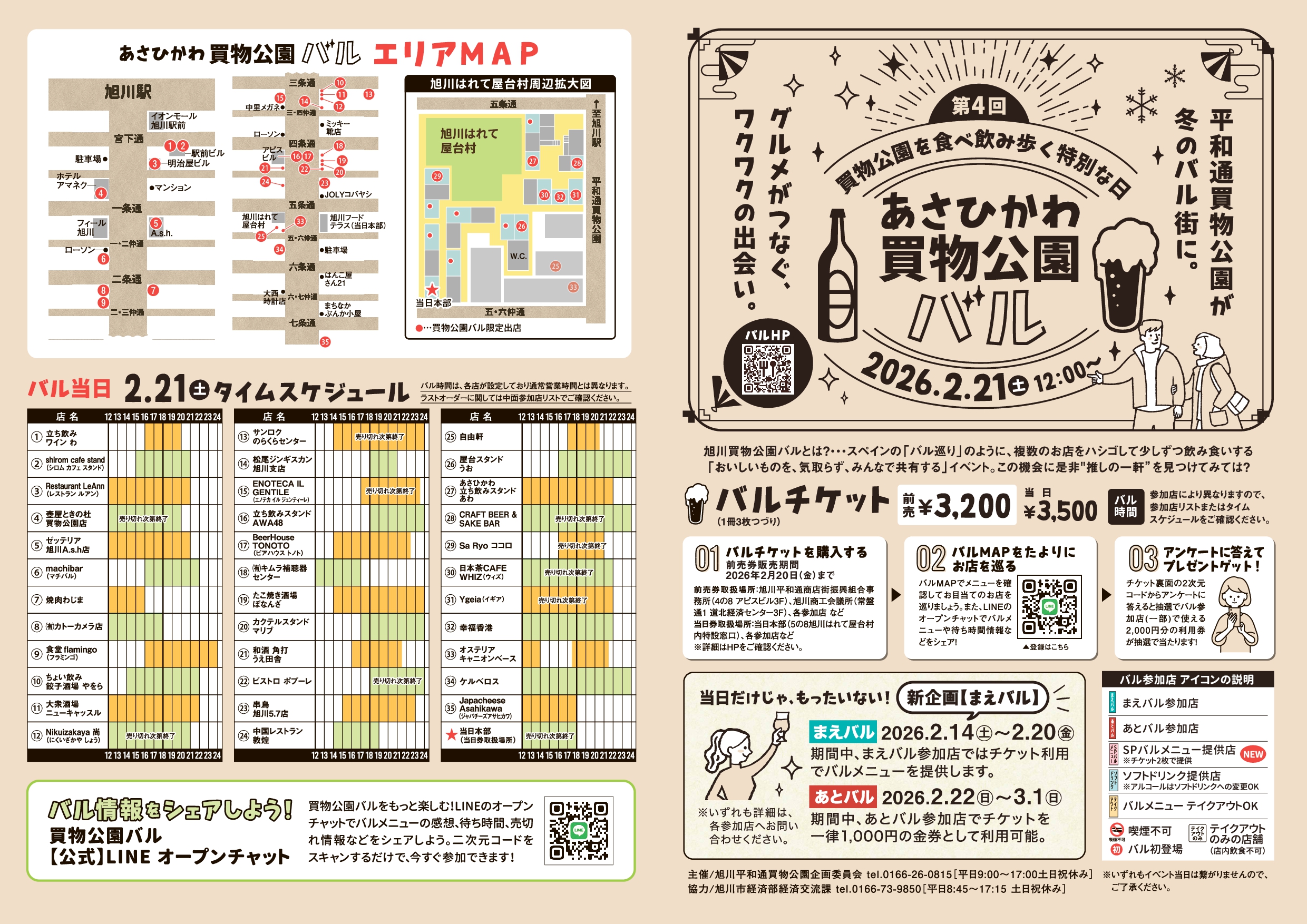※旭川はれて屋台村内にて、2/21のみ限定出店する店舗を含む