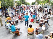 アフターコンサートも例年並みの観客でにぎわった駅北広場と買物公園。