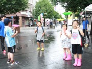 大道芸人さんたちのプレパフォーマンスを行う前夜祭(29日(金))は午後から雨が降り出してきて外にしようか、A.s.h.アトリウムにしようかとギリギリまで悩んでましたが、せっかくの誕生祭なので意を決して買物公園上で開催することに。